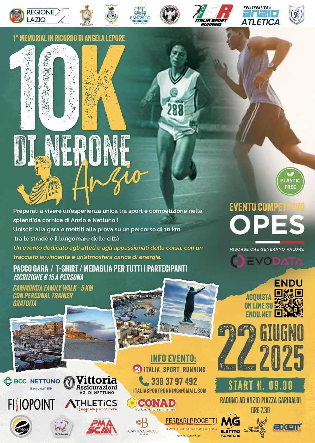 - Ad Anzio e Nettuno oggi domenica 22 giugno la prima edizione in onore di Angela Lepore, una gara su un percorso di 10 chilometri tra le strade e il lungomare della città