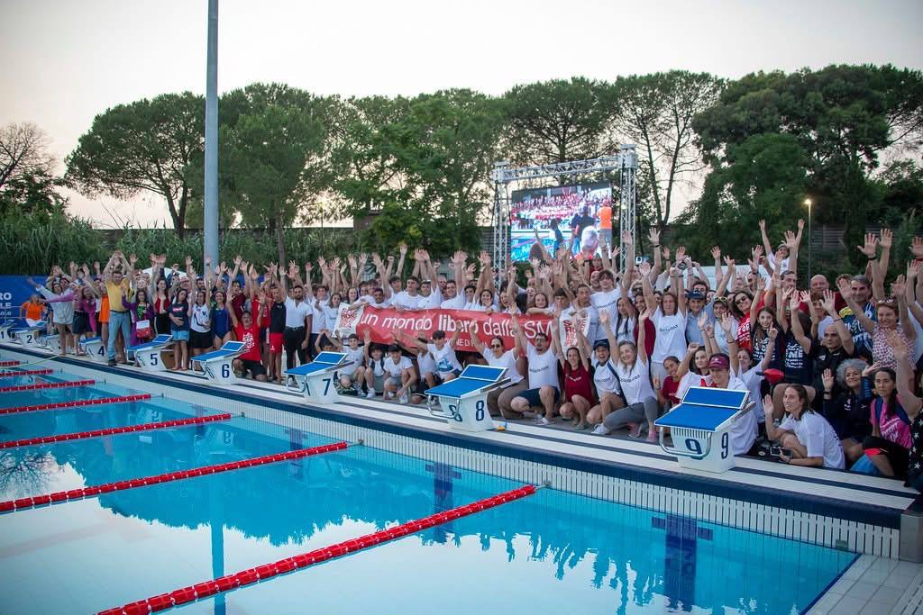 Oltre mille partecipanti — tra i quali circa 900 nuotatori, 80 giovani atleti del torneo di pallanuoto Under 12, 60 persone coinvolte nelle attività di benessere e 60 volontari AISM impegnati nell’organizzazione — si sono uniti in una giornata all’insegna dello sport, dell’inclusione e della solidarietà a sostegno delle attività della Sezione di AISM Roma, Associazione Italiana Sclerosi Multipla.
