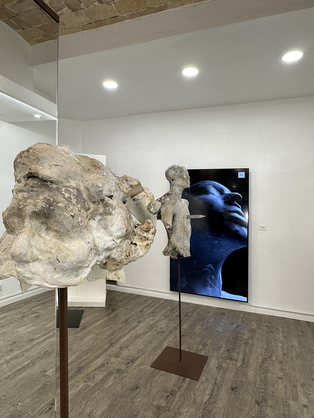All’interno della galleria romana sono esposte 15 opere scultoree che chiamano alla mente forme umane, simboli e immagini, le quali rappresentano un ponte metaforico tra l’io vissuto più profondo e la forza evocativa di una bellezza che non mira ad avere compiacimento, ma a stimolare riflessioni e suggestioni, amplificate da costanti riferimenti mitologici.