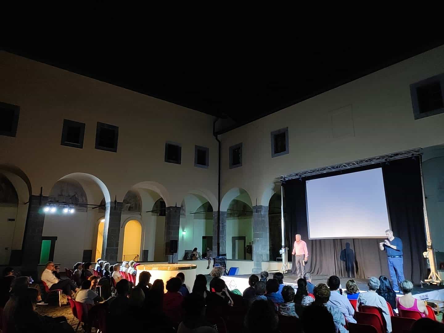 Lo spettacolo è stato anticipato dalla prima delle visite guidate che la dottoressa Sara Di Luzio, storica dell’arte e consigliera della FondArC, ha tenuto nelle varie zone della Casa delle Culture: Chiostro, Sala degli Affreschi (ex Refettorio), Auditorium, Giardino.