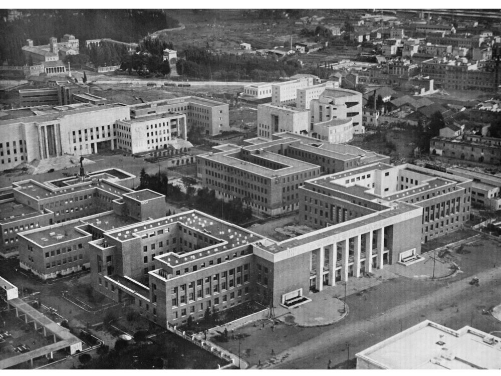 ll primo Ateneo di Roma ha da poco festeggiato i 90 anni dalla fondazione. Le vicende progettuali (1932-1935) sono note. Con questa singolare proposta progettuale Marcello Piacentini, incaricato del piano generale oltre che del Rettorato, volle definire la composizione raccolta in forma di grande “basilica”, un complesso di edifici destinati alle facoltà umanistiche e scientifiche disposti intorno ad un viale e ad una piazza centrale.