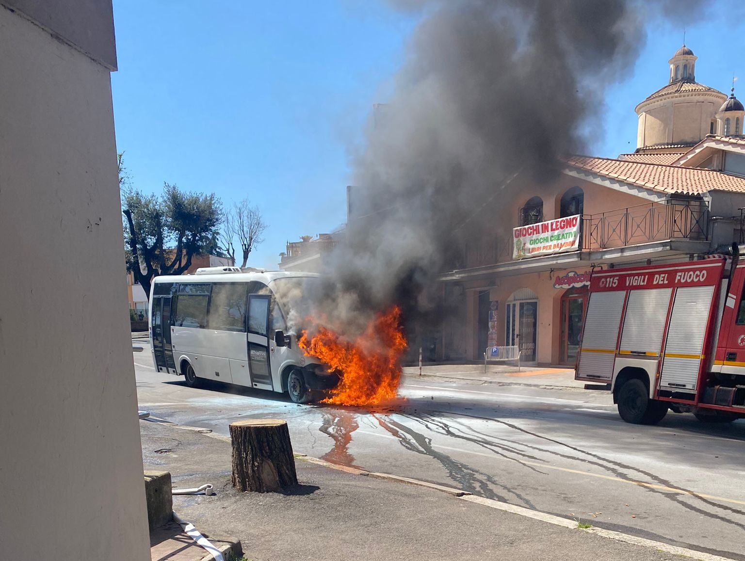 Velletri (Rm) – Erano le 13,50 di venerdì, quando per cause in corso di accertamento, un bus del trasporto pubblico locale è rimasto avvolto tra le fiamme in Via delle Mura, in prossimità della Piazza XX settembre.