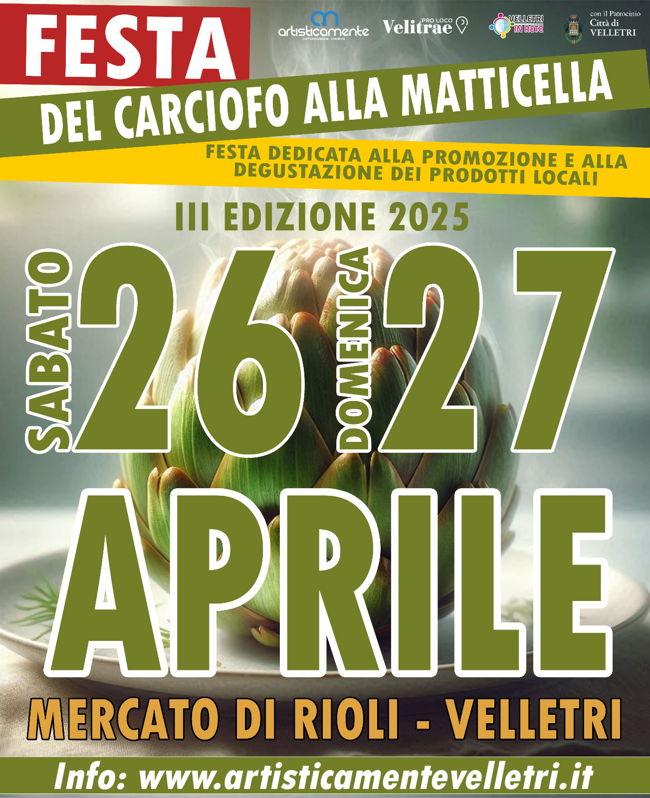 Ritorna anche quest’anno la Festa del Carciofo alla Matticella, con il patrocinio del Comune di Velletri: l’evento primaverile che celebra uno dei prodotti più amati del nostro territorio