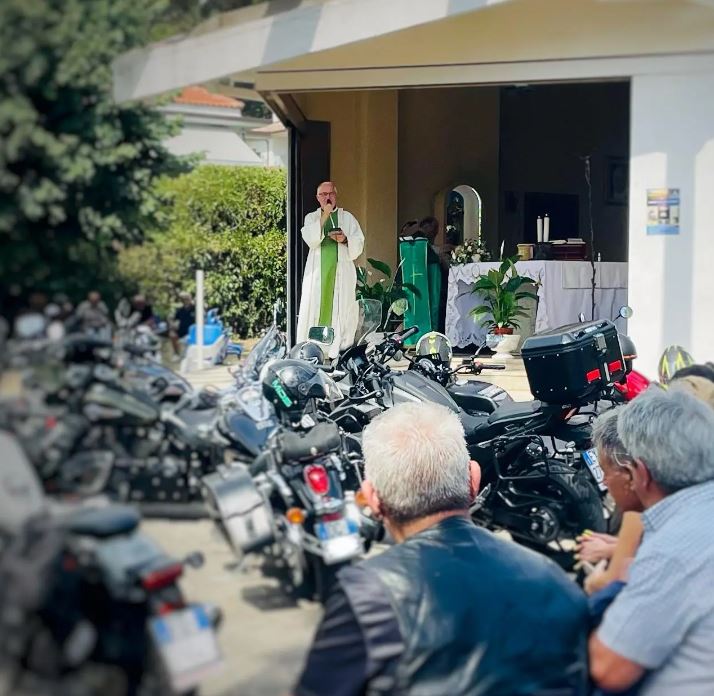 Dopo la Messa, Don Taddeo, affettuosamente conosciuto come Don Biker, ha impartito la tradizionale benedizione delle moto.