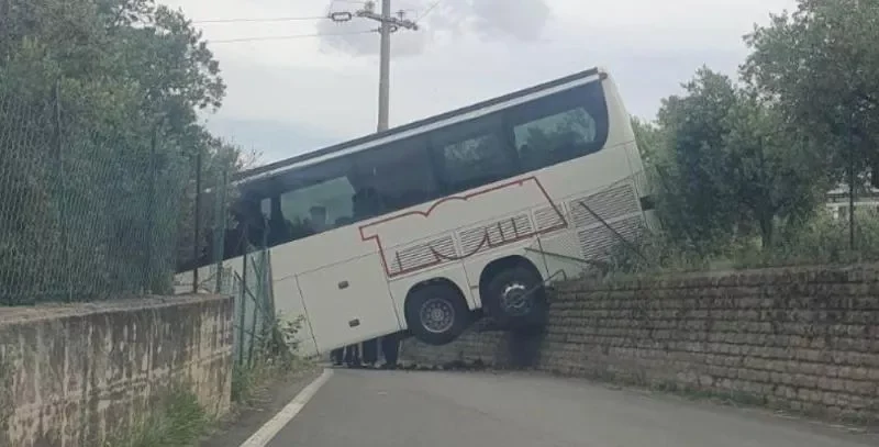 Marino, autobus si sfrena e finisce in mezzo alla strada: tragedia sfiorata