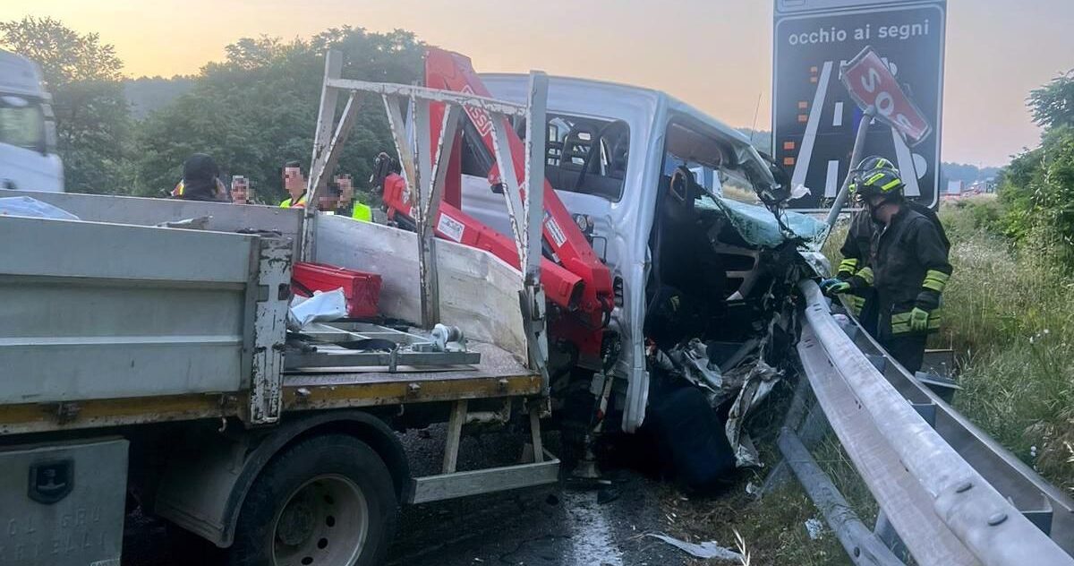 A1 al km 609, furgone di operai tampona un tir: grave un giovane