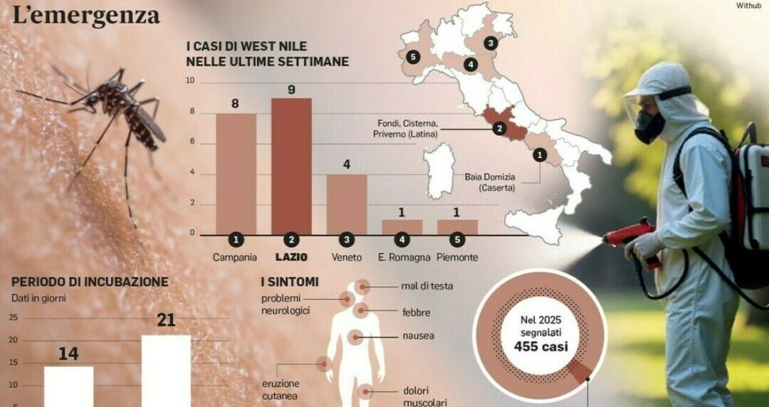 Ventuno nuovi casi di West Nile virus nel Lazio in quattro giorni