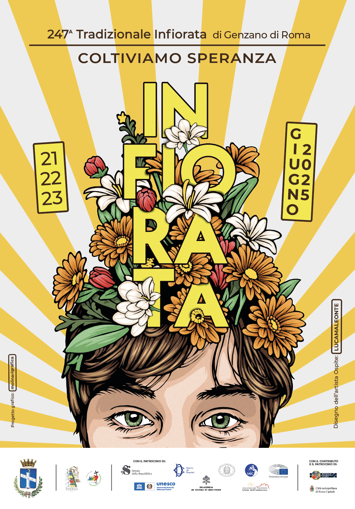Anche quest’anno l’Infiorata, grazie alle Maestre e ai Maestri infioratori, ai capipezzo, ai realizzatori, al cantiere, agli uffici e alla cittadinanza tutta, dà corpo e voce a un’arte che, operando nella e con la speranza, è anche un’elaborazione del nostro tempo singolare e collettivo.