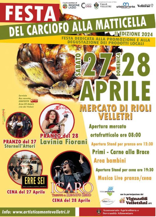 Il Carciofo alla Matticella lo ricordiamo da sempre uno dei piatti più amati dalla comunità veliterna, non c’è primavera senza i profumi e i sapori o prodotti emanati dalla loro cottura, accompagnati da panini assortiti vino e birra.