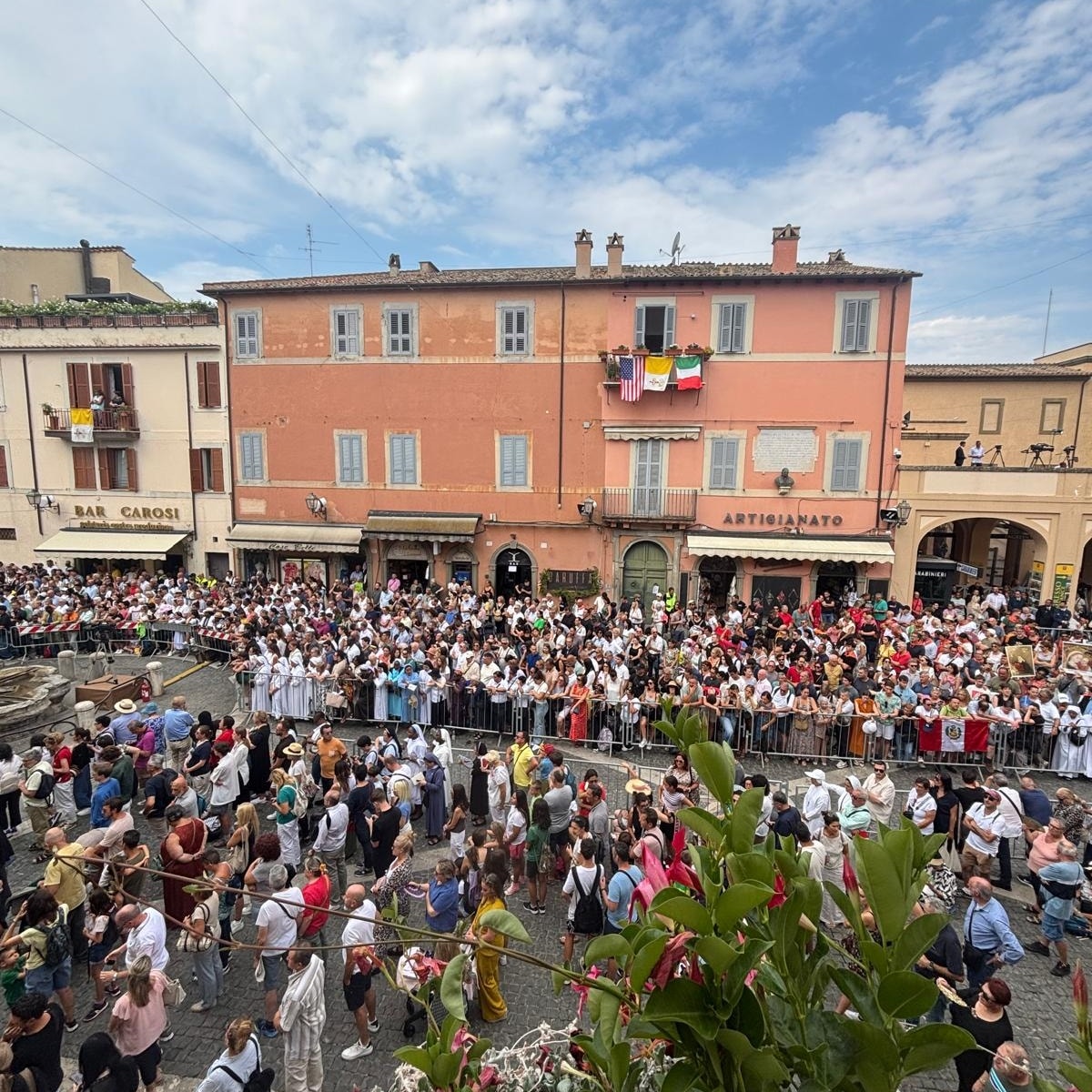 Castel Gandolfo – 16 agosto 2025 – Papa Leone XIV ieri ha celebrato i suoi primi 100 giorni di pontificato nella Città di Castel Gandolfo, accolto e scaldato dall’abbraccio di 3000 fedeli giunti in piazza della Libertà in occasione della Santa Messa e dell’Angelus per l’Assunzione della Beata Vergine Maria. Fedeli che hanno potuto seguire le parole del Papa durante la Santa Messa grazie al maxi schermo installato dal Comune di Castel Gandolfo nella piazza.