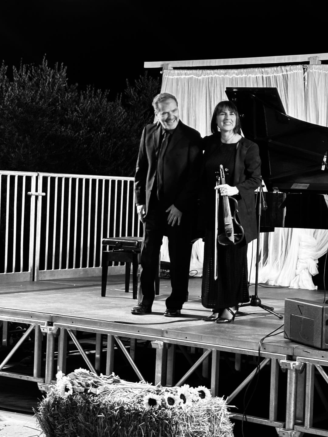 Protagonisti della serata la violinista Cristina Picca e il pianista Carlo Vittori, che hanno guidato gli spettatori in un emozionante viaggio musicale sotto un cielo limpido e una luna particolarmente luminosa. A impreziosire l’evento, l’esibizione di tre ballerini dell’Academy School Dance di Velletri, che hanno interpretato con eleganza le musiche di Ludovico Einaudi e un medley dedicato al Maestro Ennio Morricone.