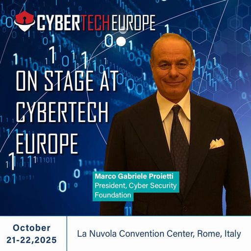 Roma 16 ottobre 2025 – Marco Gabriele Proietti, fondatore e presidente della Cyber Security Foundation, interverrà come speaker a Cybertech Europe 2025, in programma alla Nuvola Convention Center di Roma, il 21 e il 22 ottobre.