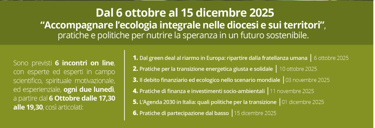 A presentare il Corso, con l’impegno ad accompagnare l’ecologia integrale nelle diocesi e sui territori e a supportare pratiche e politiche per nutrire la speranza in un futuro sostenibile, sono Caritas italiana, Focsiv e Fondazione Lanza.