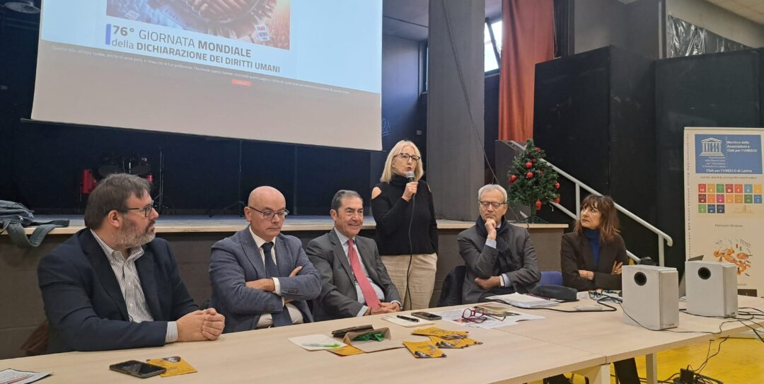 La 76ᵃ Giornata Mondiale dei diritti umani: “Diritto alla comunicazione e all’informazione, un fenomeno di etica professionale /civile/sociale tra fake news e verità” è stata organizzata dal Club per l’UNESCO di Latina con il patrocinio del Comune di Latina, la collaborazione del Lions Club Sabaudia – Circeo Host e del Liceo Artistico Statale Michelangelo Buonarroti.