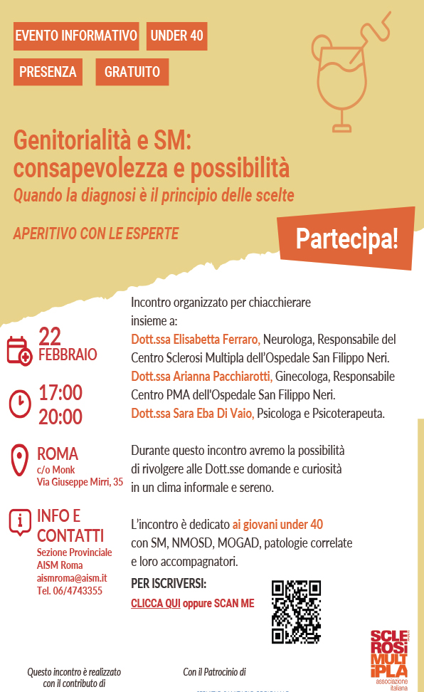 L’evento si inserisce nel più ampio impegno di AISM Roma nel promuovere informazione qualificata, empowerment e supporto alle persone con sclerosi multipla e patologie correlate, con particolare attenzione ai giovani adulti e ai momenti di passaggio più delicati della vita.