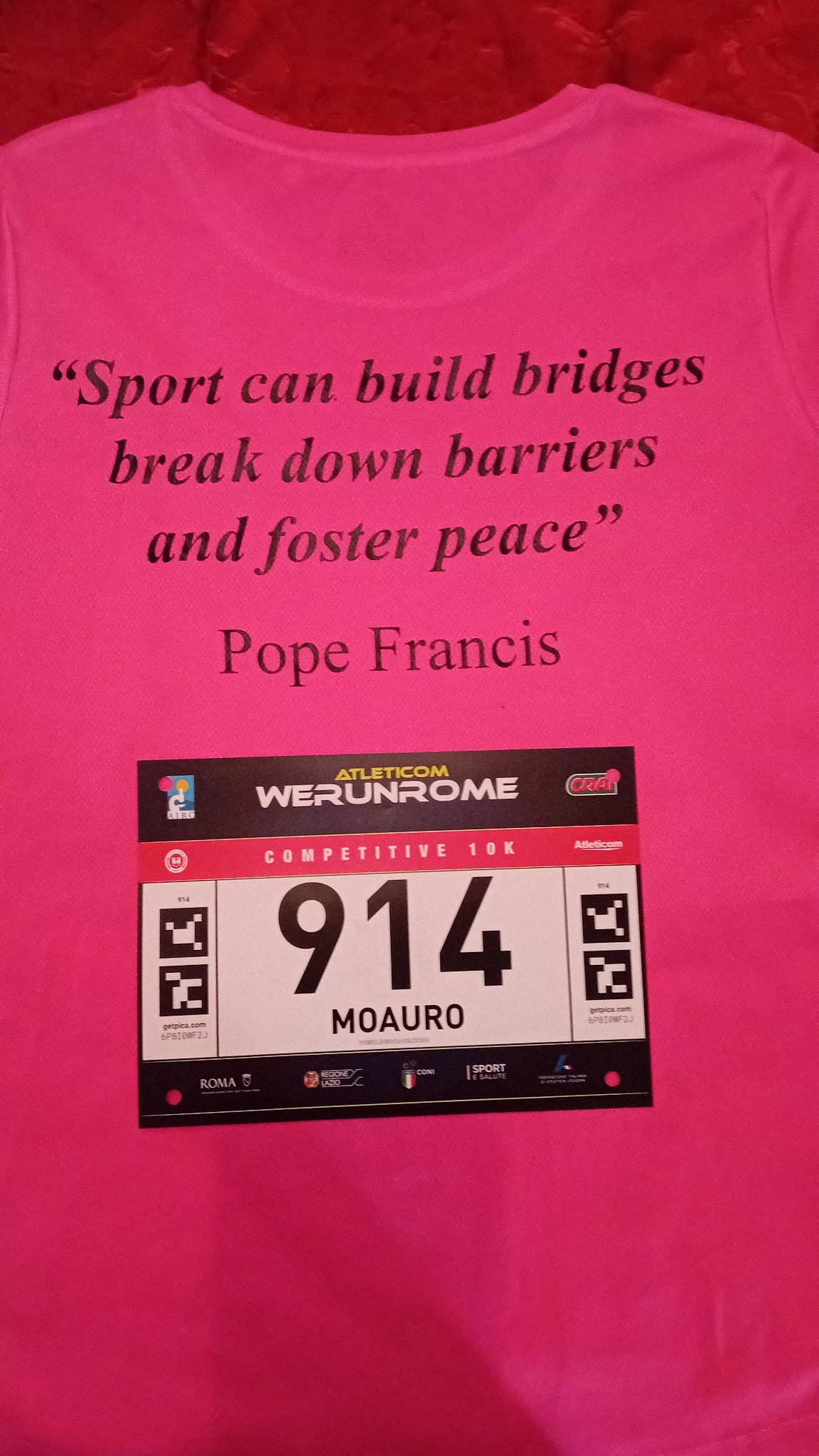 Un momento speciale è stato il gesto di Emanuela Moauro dei Top Runners Castelli Romani e di Massimo Pirani della Genzano Matathon, che hanno corso indossando una maglietta speciale, con il messaggio di pace “Peace” sul davanti e le parole di Papa Francesco sul retro: Sport can build bridges, break down barriers and foster peace (“Lo sport costruisca ponti, abbatta barriere e favorisca la pace”). Questo gesto, condiviso anche in altre competizioni, da Roberto Di Sante (presente anche in questa gara podistica) alla TCS New York City Marathon, dimostra come lo sport possa essere un potente veicolo di speranza e solidarietà.