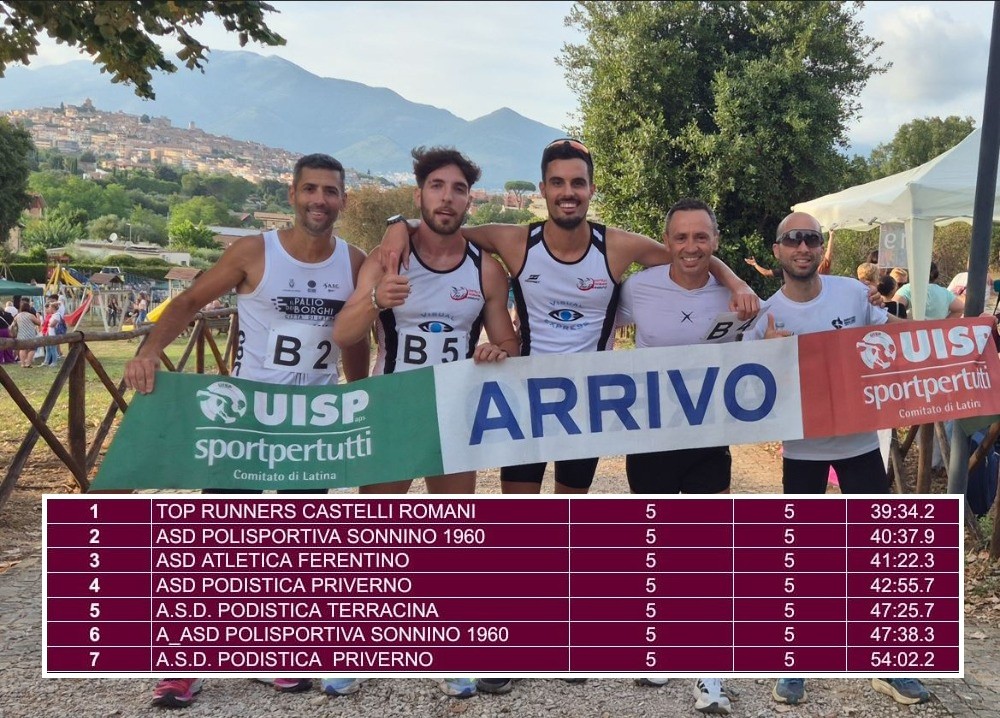Per questa gara, il nome della formazione è stato Top Runners Castelli Romani, anche se solo De Vitis e Cellucci sono effettivamente tesserati con questa ASD, mentre Marchiori, Furio e Danieli appartengono ad altre società sportive.