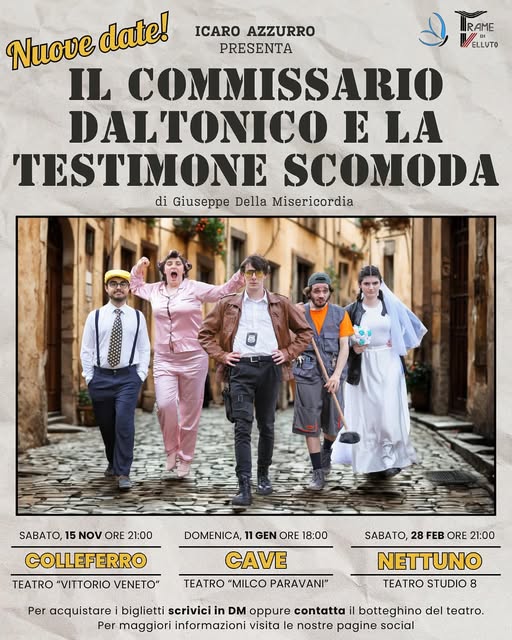 Colleferro 28 ottobre 2025 – La produzione teatrale Icaro Azzurro presenta con entusiasmo il nuovo spettacolo teatrale di Giuseppe Della Misericordia: una commedia degli equivoci immersa in un mondo retro-futuristico, che strizza l’occhio all’estetica pop delle sitcom anni ‘70.