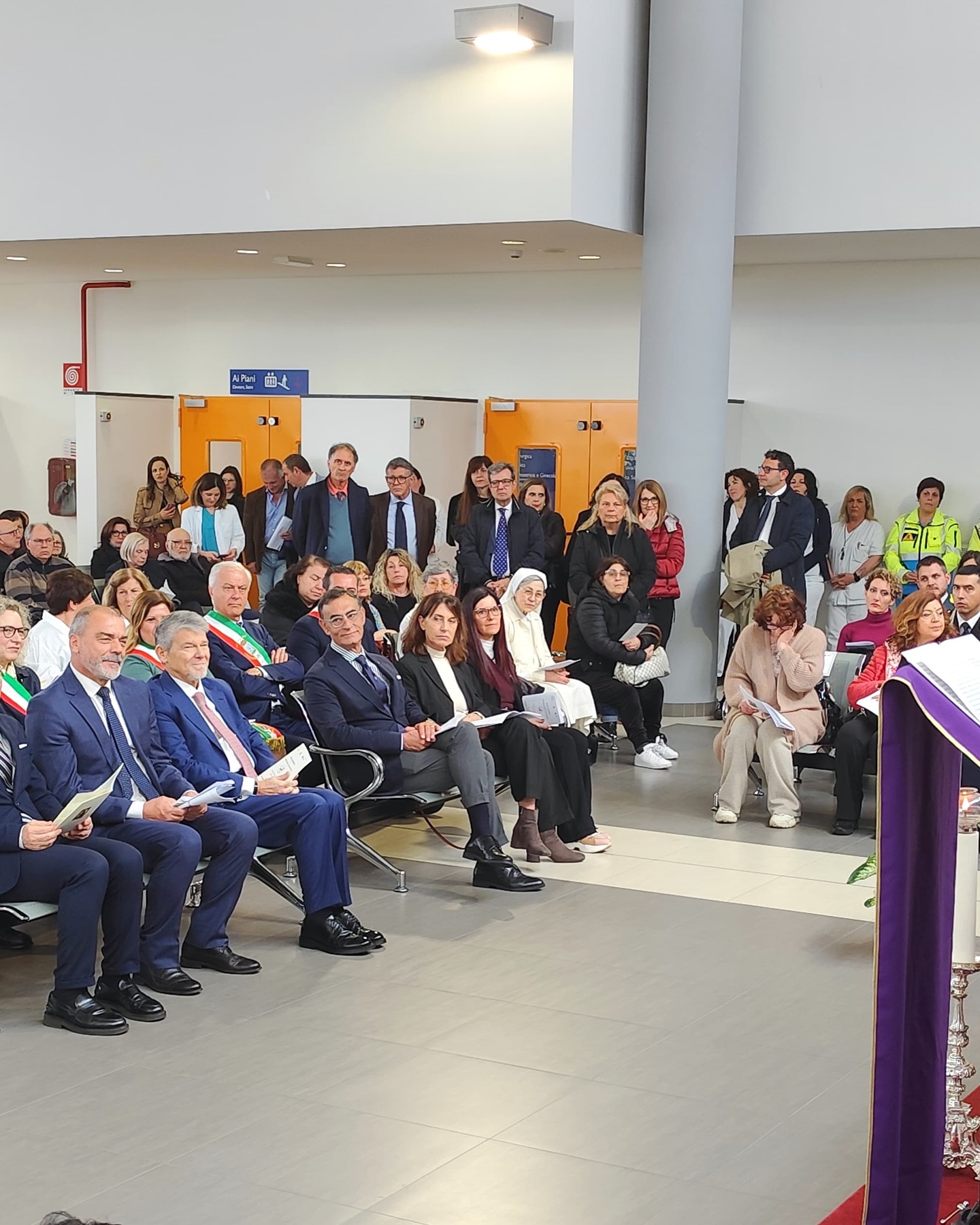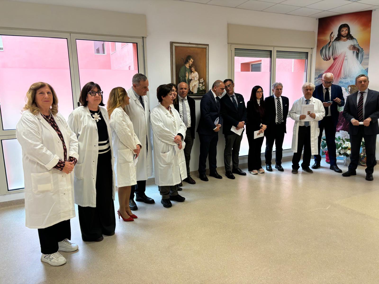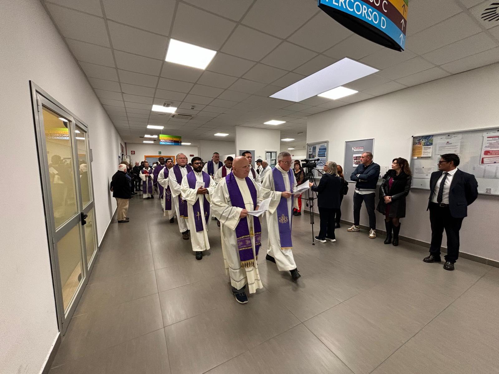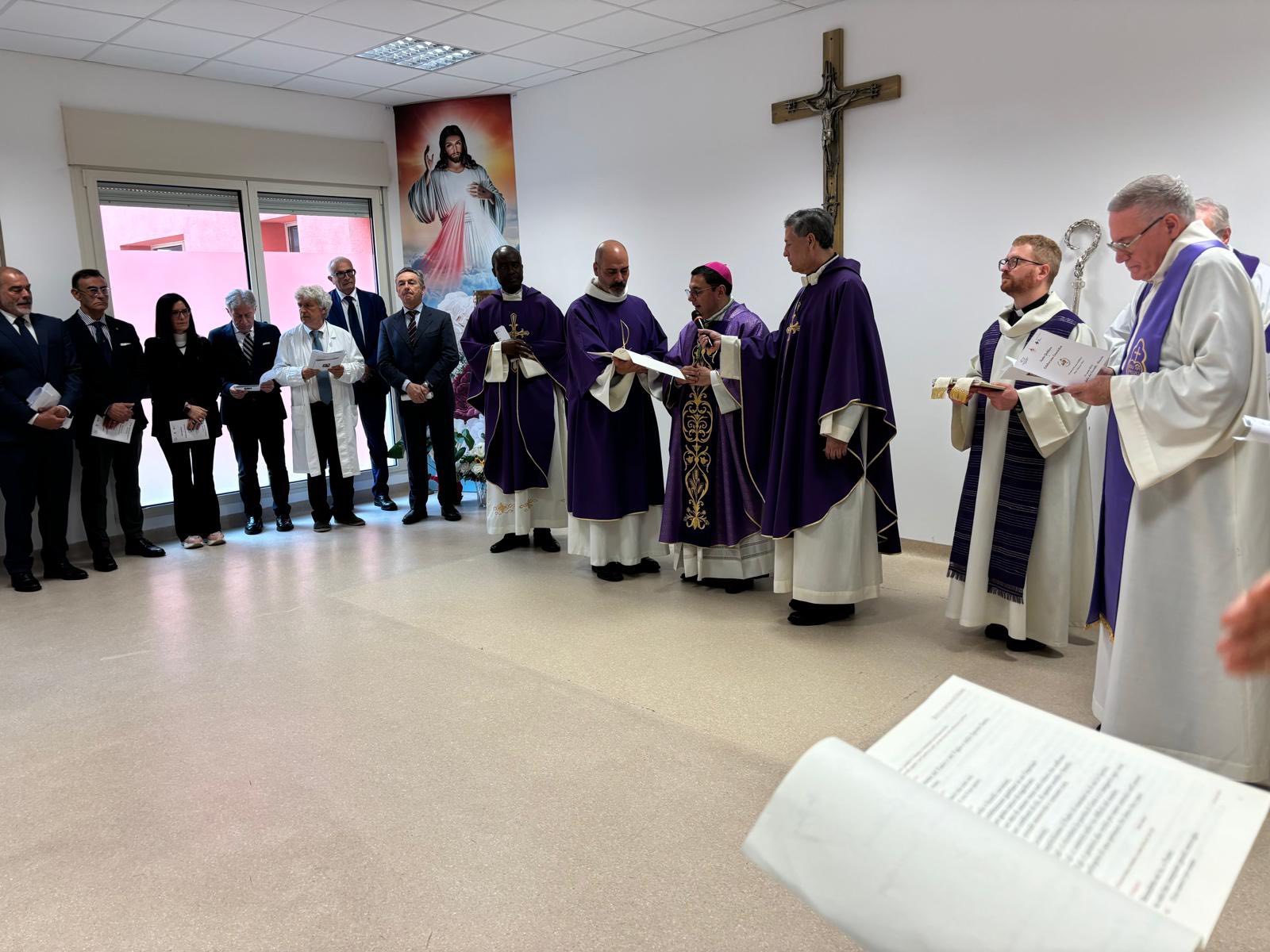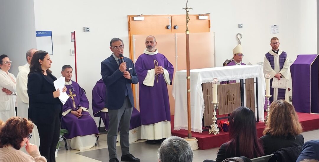 Un momento particolarmente significativo è stato la piantumazione simbolica di due giovani ulivi all’interno della cappella, che saranno successivamente collocati nell’area verde dell’ospedale.