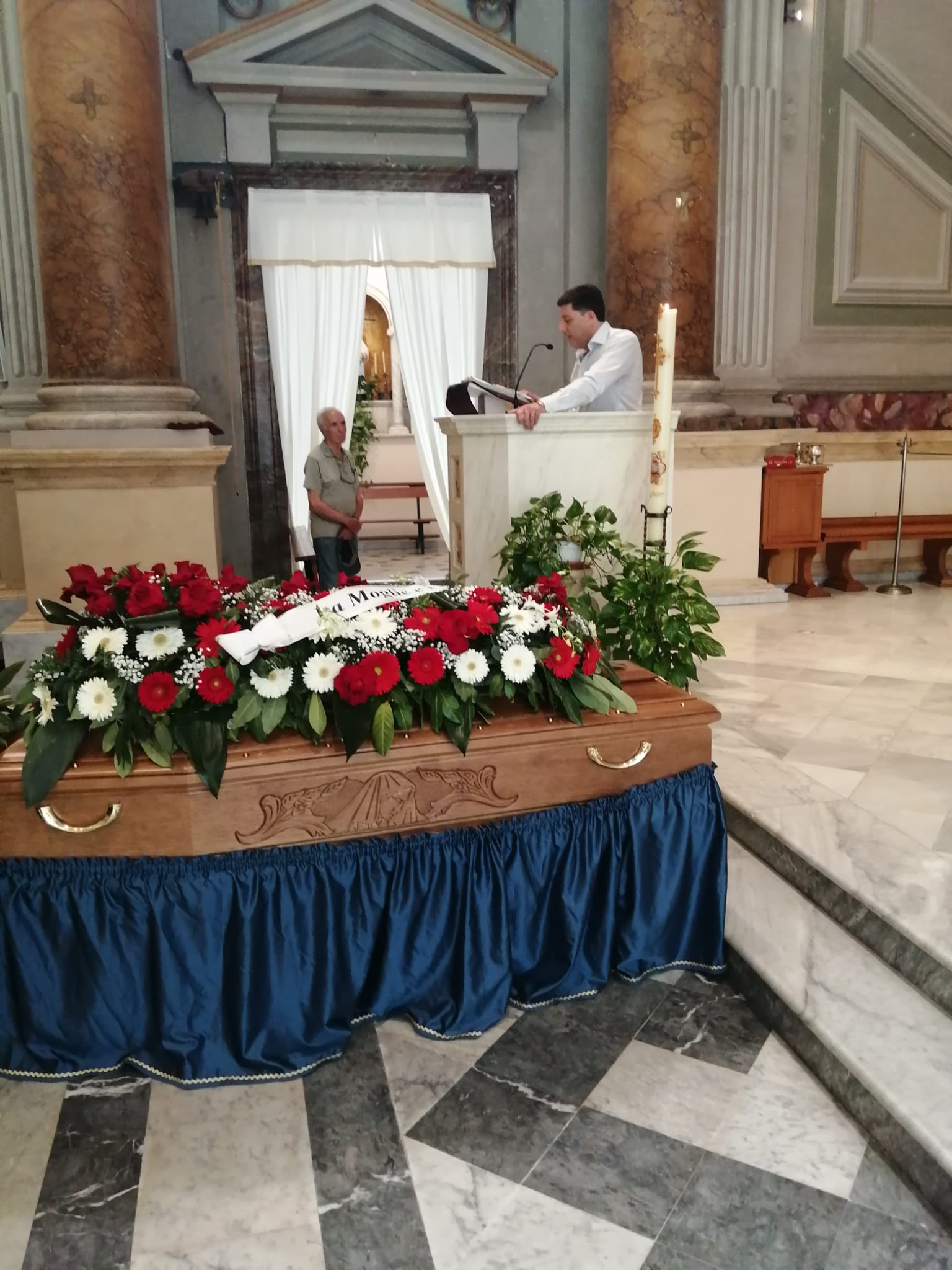 Velletri (Rm) – La Santa Messa è stata officiata questa mattina 2 luglio dal parroco, don Roberto Mariani, alla presenza dei tantissimi amici, rappresentanti dei commercianti, artigiani e delle istituzioni. Dopo il caloroso abbraccio ai familiari, don Roberto ha ringraziato tutti gli intervenuti per l’affetto e la stima che hanno voluto testimoniare nei confronti del carissimo Sergio.
