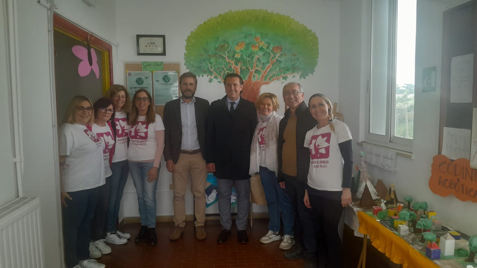 Velletri (Rm) – Questa mattina, 5 maggio, il Sindaco di Velletri, accompagnato dal Dirigente tecnico-Responsabile delle strutture P. Candidi, ha visitato la scuola di Pratolungo, accolto dal Dirigente Scolastico G. Santulli dell’Istituto G. Felci- dalle Insegnanti dell’ Infanzia-Primaria e dai festosi alunni del plesso con gioiose bandierine, appositamente create.