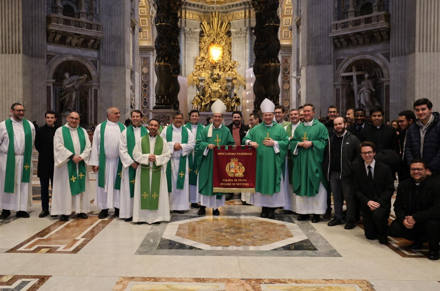 Dopo il momento di preghiera al Gemelli, il gruppo ha proseguito il suo cammino verso Piazza San Pietro, continuando a pregare per la salute del Pontefice. Lì, un gruppo di prelati, commosso dal gesto degli agenti, ha voluto onorarli con un atto simbolico: sorreggere il labaro dell’Associazione per una foto ricordo, suggellando così un momento di fede e fratellanza.