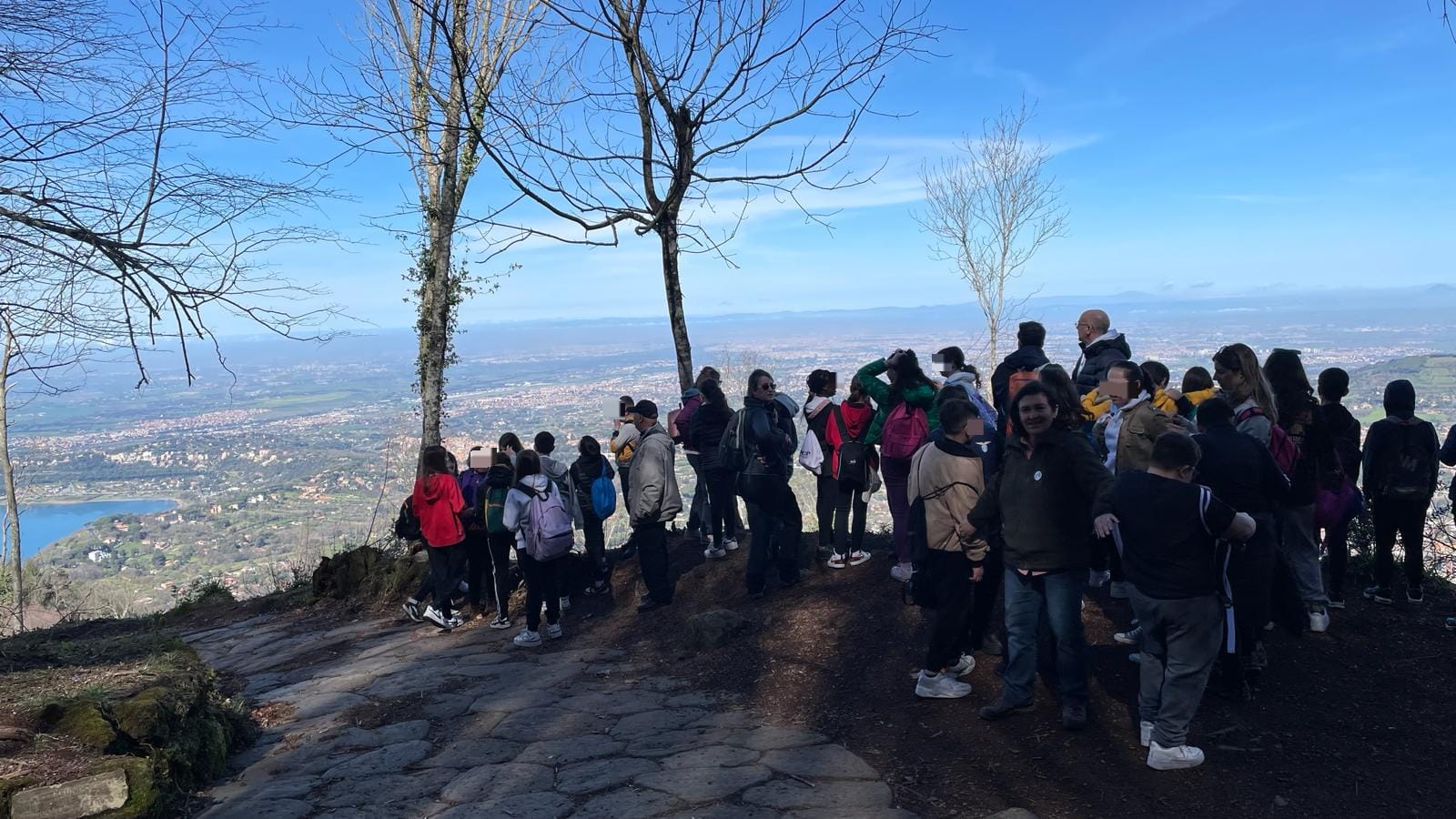 Rocca di Papa (Rm) – Gli studenti dell’istituto comprensivo “Leonida Montanari” di Rocca di Papa (RM), guidati dai Tecnici naturalisti dell’Ente Parco, hanno svolto attività sul campo, dopo l’incontro in aula di alcuni giorni fa. L’uscita si è tenuta nei boschi di Rocca di Papa, attraversando un tratto della Via Sacra, per raggiungere il famoso belvedere con il suggestivo affaccio sui due laghi vulcanici di Nemi e Albano. Durante la passeggiata i ragazzi hanno potuto osservare le caratteristiche naturalistiche dell’area, in un contesto informale e dialogante che ha favorito lo scambio e ha alimentato la conoscenza della biodiversità.
