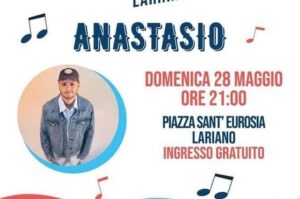 La seconda edizione di “Note in Comune” aprirà la rassegna domenica 28 maggio alle ore 21.00 in piazza Sant’Eurosia, in occasione dei festeggiamenti della Santa Patrona Eurosia, con il concerto di Anastasio (rapper italiano e vincitore della dodicesima edizione di X Factor).