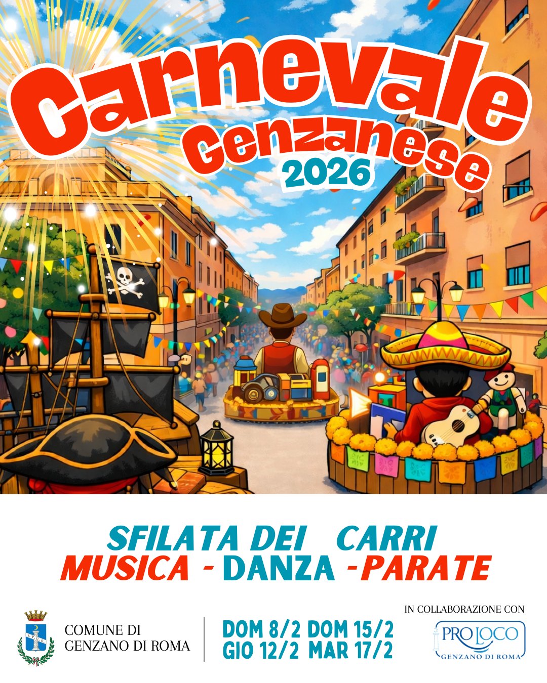 Il Carnevale Genzanese 2026 si svolgerà nelle seguenti date: