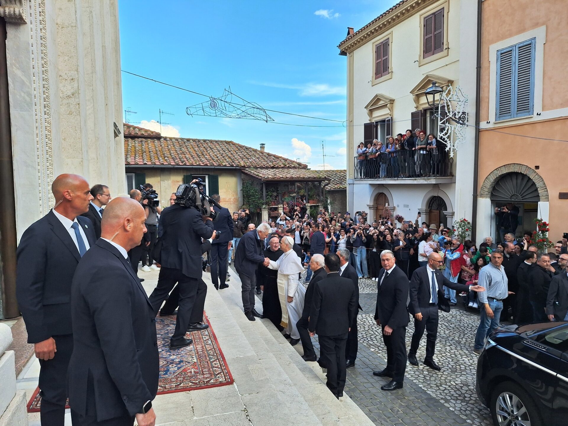 Papa Leone XIV è giunto a Genazzano nel pomeriggio del 10 maggio 2025, a bordo di un SUV scuro, accompagnato dai gendarmi vaticani. Al suo arrivo, una folla festante di fedeli lo ha accolto con entusiasmo. Il Pontefice ha salutato i presenti e si è poi raccolto in preghiera privata davanti all’icona della Madre del Buon Consiglio.