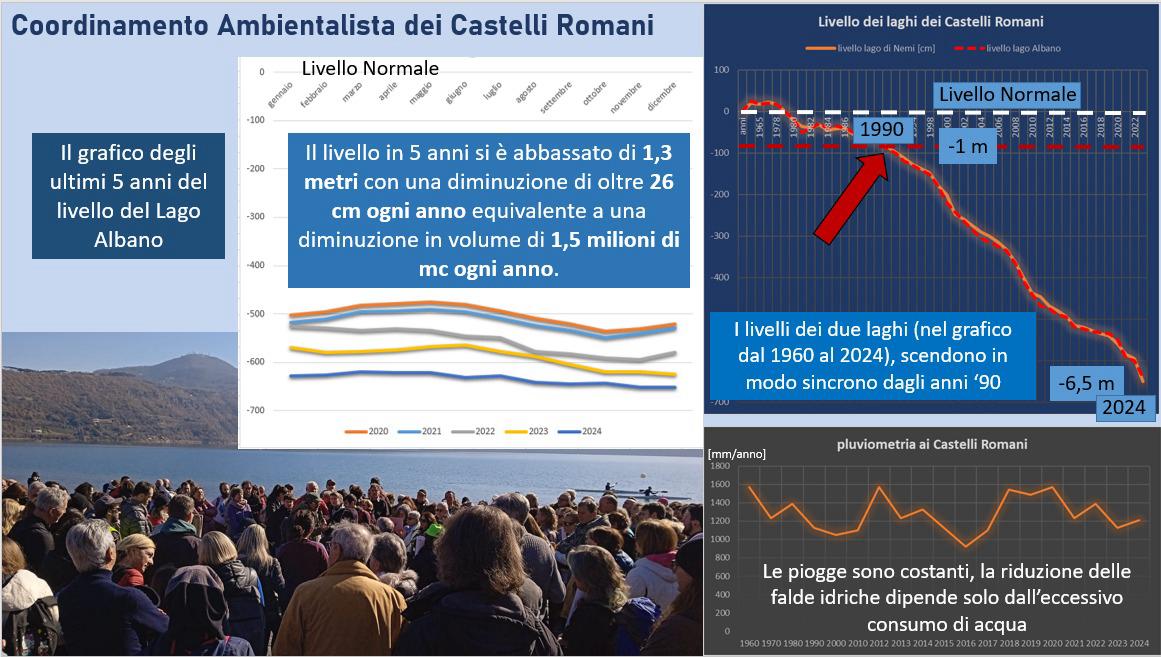 Oltre 40 associazioni hanno aderito anche quest’anno a queste iniziative, che si concentrano sulla salvaguardia delle falde idriche e dei laghi del territorio. La situazione, denunciata già oltre 40 anni fa, è stata confermata da numerosi studi che hanno individuato le cause del progressivo abbassamento dei laghi e della falda idrica del Vulcano Laziale.