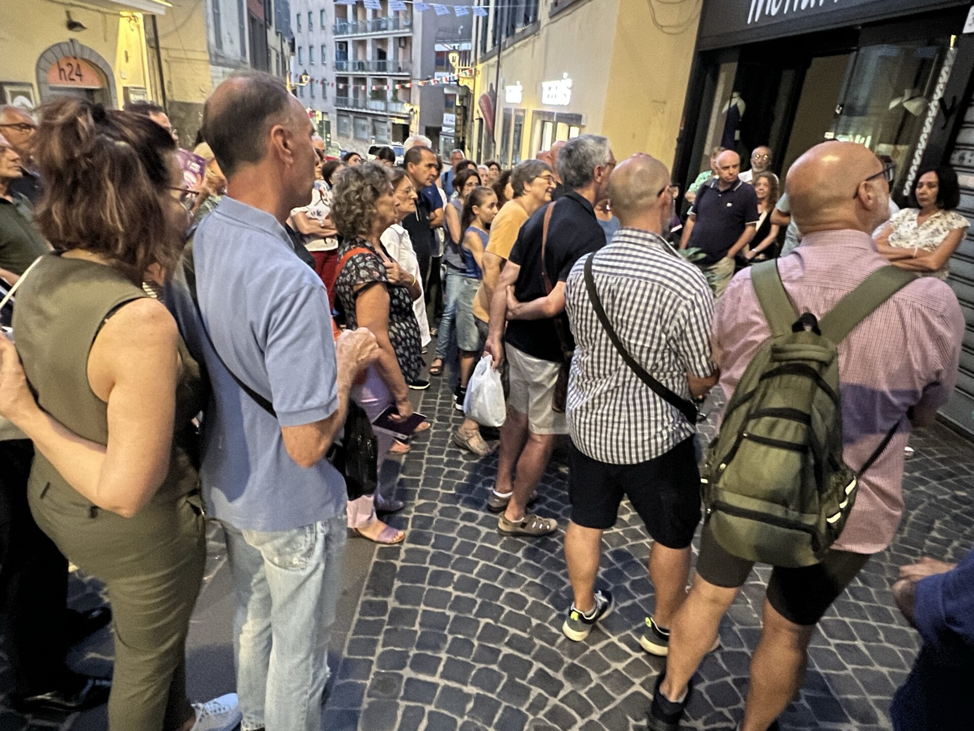 Velletri (Rm) – La passeggiata iniziata alle 20,30 ha percorso le viuzze del borgo medioevale della città, terminando nell’Area Stimmate con un brindisi fraternizzante offerto dalla Ditta Spallotta Walter snc, via dei Laghi, che ha proposto in degustazione Janus Bellone, Vesta Cesanese, Rose’ Rosato, Teia Chardonnay, insieme alla produzione a base di mirtilli secondo il metodo di produzione biologica e senza zuccheri aggiunti offerti dall’azienda “Piccoli Frutti” via dei Laghi. Eccellenze del nostro territorio!