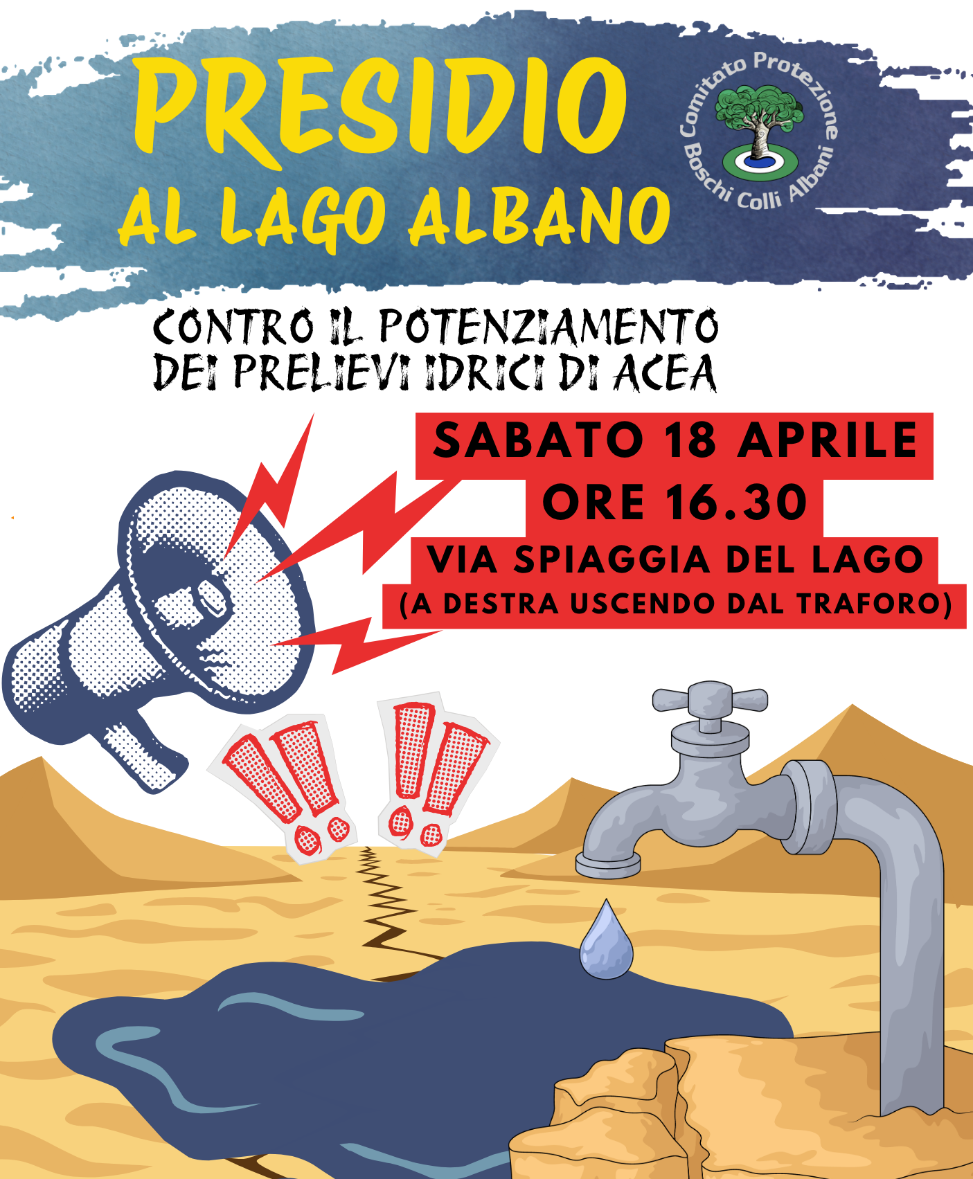 Invitiamo tutti/e a partecipare al presidio a difesa del Lago Albano e contro la scellerata gestione delle risorse idriche e del territorio da parte di enti pubblici e multinazionali. Ci vediamo al lago sabato 18 aprile alle 16.30.