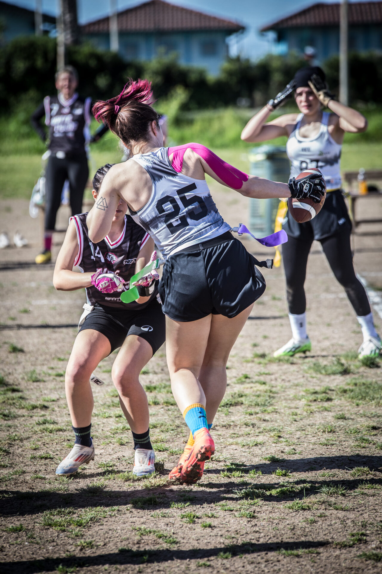 L’esordio ha visto le ragazze tornare a casa senza alcuna vittoria rispetto alle 4 partite disputate, ma la società aveva messo a preventivo tale possibilità, in quanto aldilà della collaborazione nata in poco tempo, nello stesso organico figurano ben 8 giocatrici all’esordio in qualsiasi competizione sportiva legata al Football Americano, a nonostante un avvio difficile nei primi due incontri, la squadra è stata capace a rimettersi in sesto e a saper giocare con intelligenza e agonismo le restanti partite della giornata.
