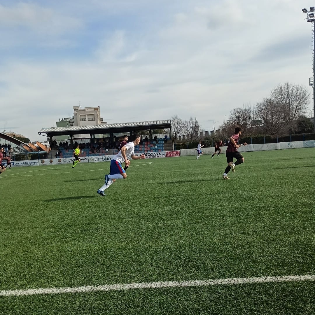 I ragazzi di De Celis partono bene e già dopo dieci minuti potrebbero sbloccare con Carlino, ma il suo tiro da posizione favorevole sorvola la traversa. La Vigor Perconti risponde al quarto d’ora con Perozzi, che da corner pennella per Di Gioacchino: colpo di testa chirurgico, traversa interna e palla in rete. I rossoneri ci provano e creano due grandi occasioni. La prima con Mingarelli, gran botta da fuori ma senza esito. La seconda al 30′ con Bala che di sinistro al volo stampa il pallone sulla traversa. Prima del recupero i padroni di casa restano in dieci.