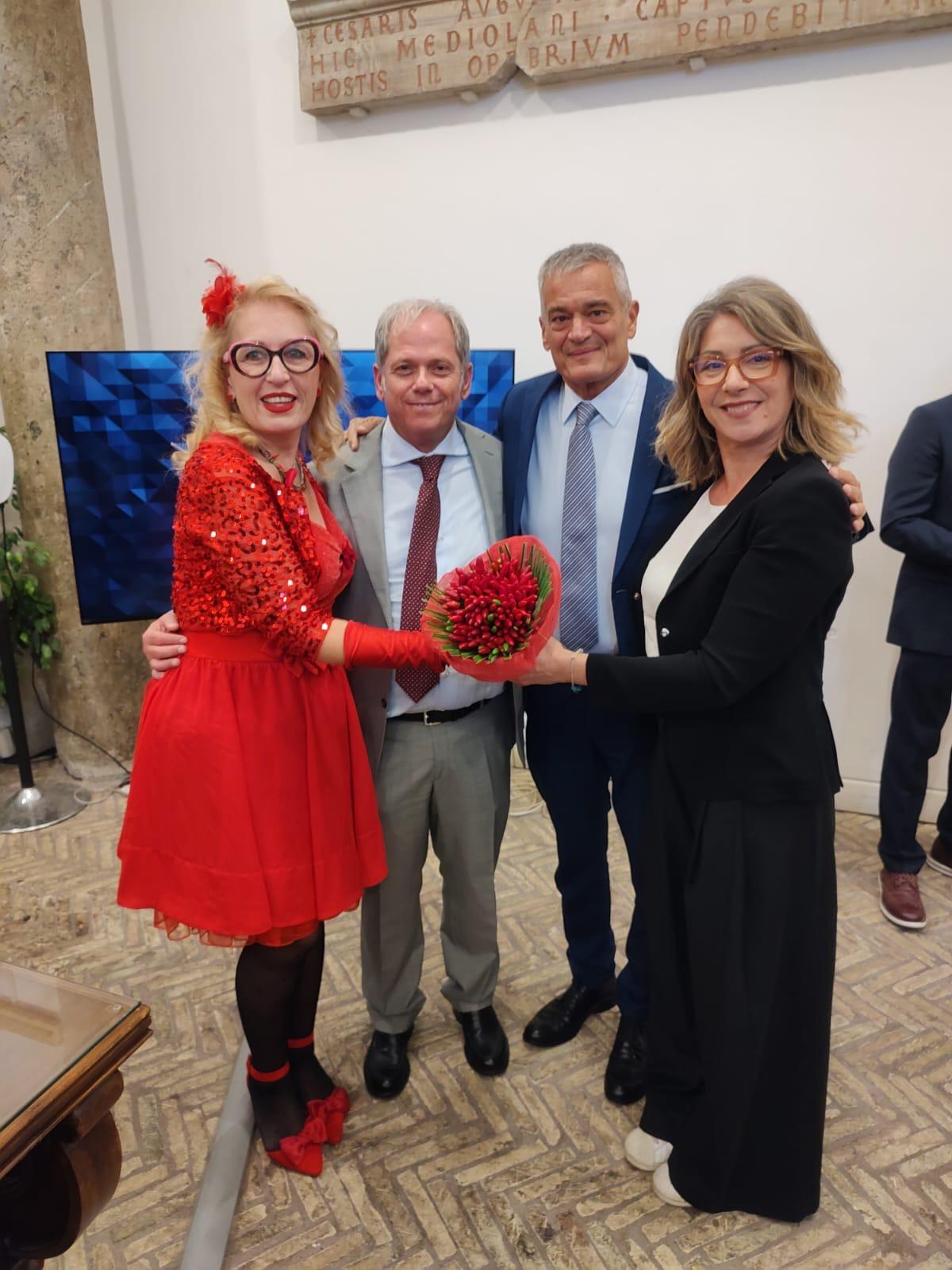 Ho approfittato della mia presenza presso la Sala del Carroccio del Comune di Roma per portare i saluti del Sindaco di Marino Stefano Cecchi e del Sindaco di Nemi Alberto Bertucci: nel 2026 le due città dei Castelli Romani saranno protagoniste di due eventi legati al prodotto tipico calabrese durante la primavera e l’autunno del prossimo anno, in cui il Peperoncino si sposerà con le eccellenze dei territori dei Castelli Romani i fiori, le fragole, l’uva e il vino.