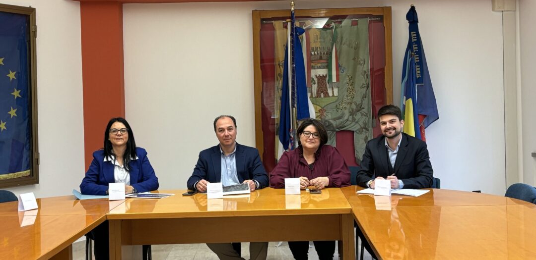 Al tavolo di presentazione, il Consigliere comunale Luca Bartoli, l’Assessore al Bilancio Sabrina Verri, il Sindaco Francesco Montecuollo e la Consigliera regionale Emanuela Mari, presidente della II Commissione Affari europei e internazionali.