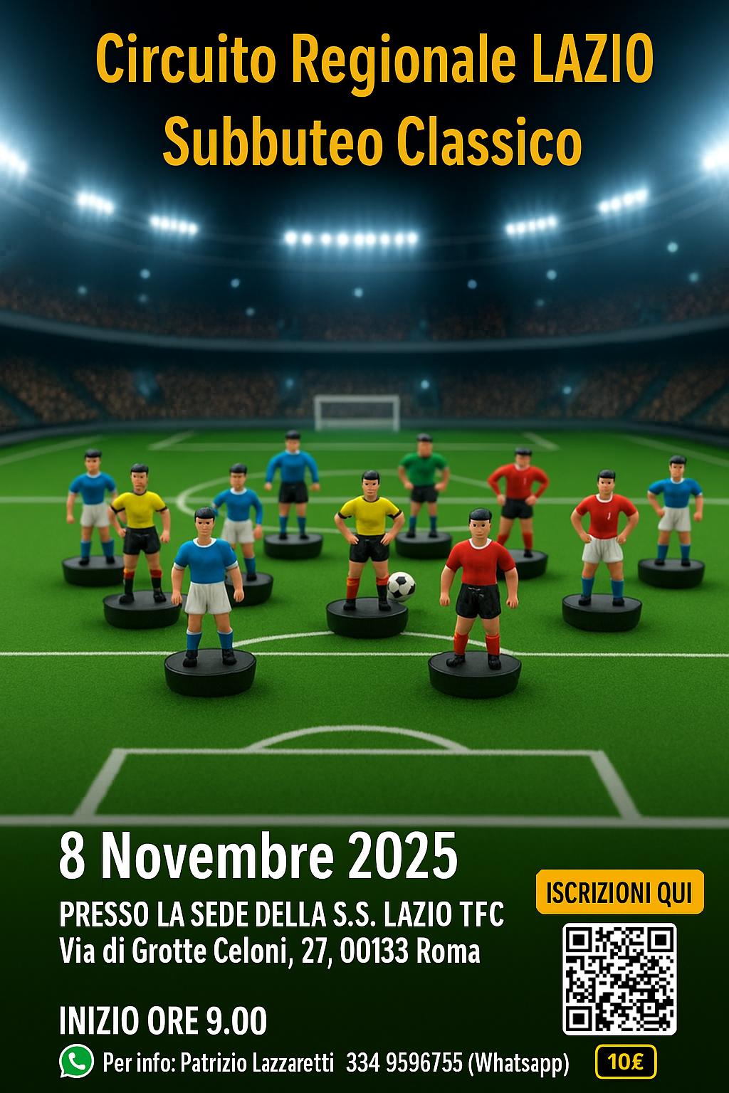 Sabato 8 novembre 2025 alle ore 9,00, parteciperà al Torneo di Subbuteo Classico Fisct Lazio.