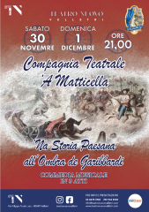 Velletri (Rm) – I prossimi 30 novembre e 1° dicembre, presso il Teatro Nuovo di Velletri, la Compagnia Teatrale ‘A Matticella, dopo il successo de ‘A Battaglia de Marino del maggio scorso, torna sulle scene con la Commedia Musicale Dialettale in 3 atti “‘Na storia paesana all’ombra de Garibbardi”.