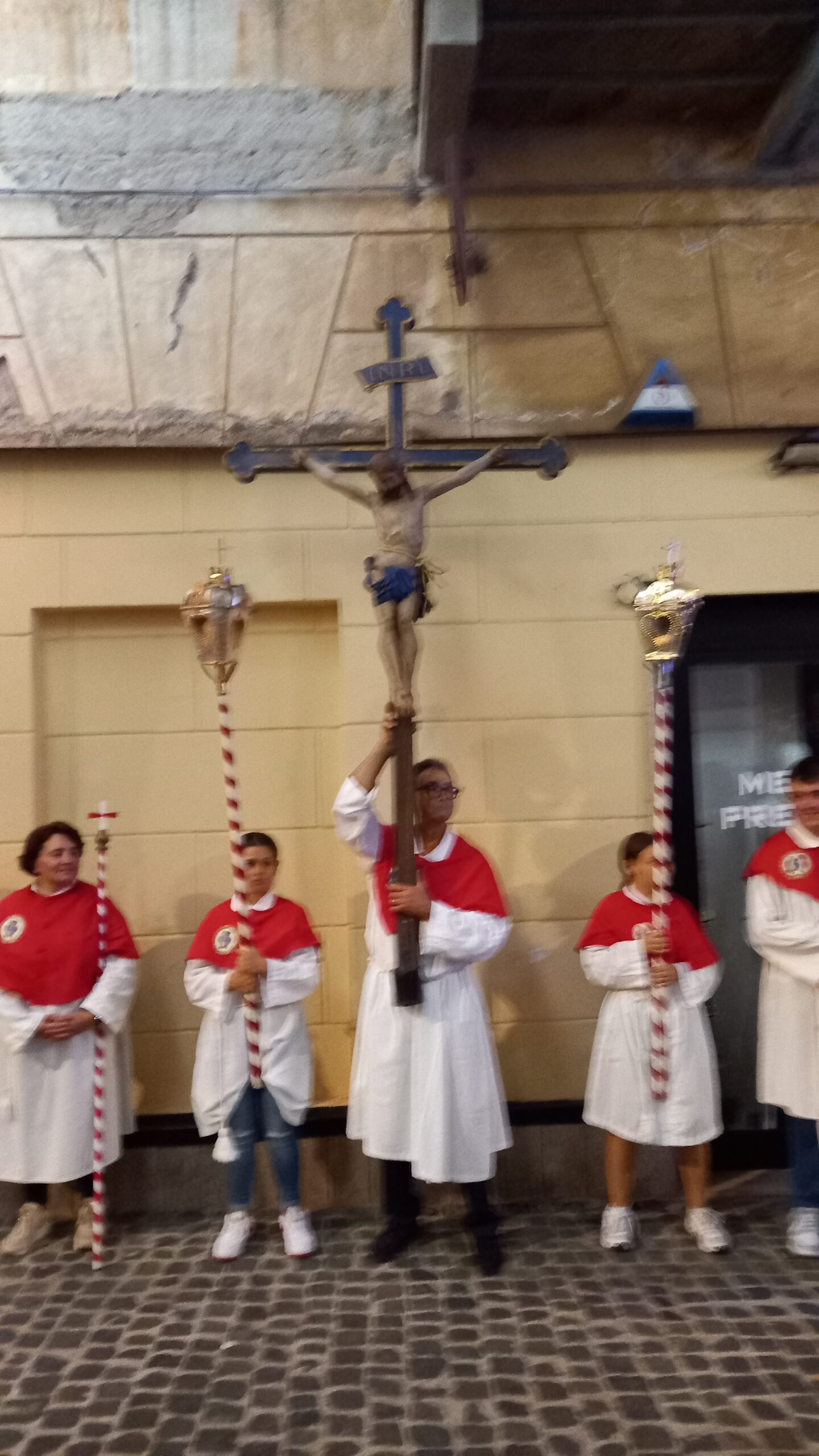 La processione preceduta dalla Santa Messa presieduta da Padre Gianluca Cafarotti ha visto la presenza delle Confraternite e delle Arciconfraternite cittadine, quella del Gonfalone ha “azzato” il crocefisso della Confraternita delle Stimmate che dalla demolizione della omonina chiesa si trova in quella dei Santi Pietro e Bartolomeo, presente anche la Confraternita di Sant’Antonio da Padova con lo stendardo opera di Sabrina Di Stazio e la Confraternita della Madonna del Carmine.