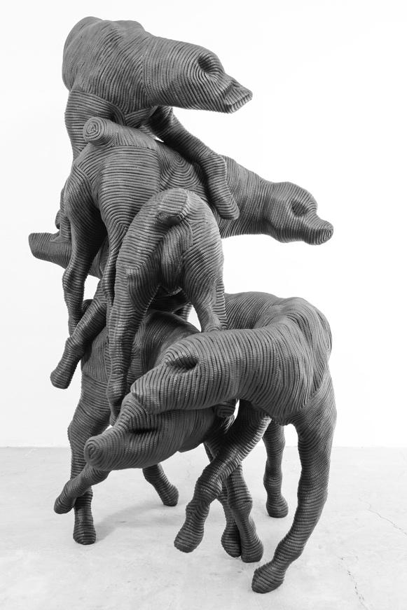 Paolo Grassino (Torino, 1967), invece, parte dalla scultura, lavorando con materiali come la gomma sintetica, il legnoil polistirolo, e la cera, ma anche con tecniche come le fusioni in alluminio o calchi di cemento. La sua ricerca si manifesta nella scelta di materiali differenti che danno vita ad opere dal grandissimo impatto, tanto visivo quanto emotivo, generando nell’osservatore una profonda riflessione sul mondo che abbiamo creato, in cui ci troviamo e nel quale saremo costretti a vivere.