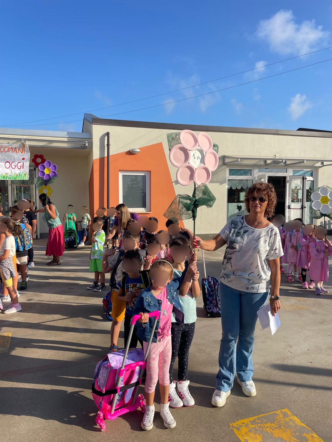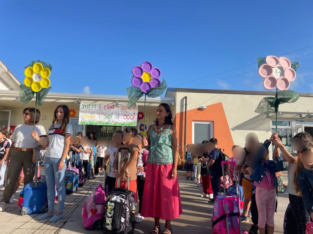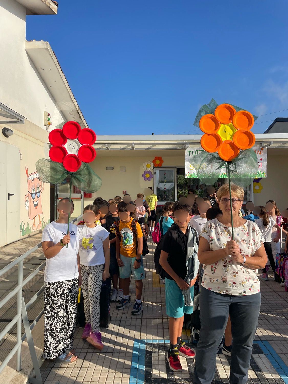 Ad attenderli c’erano le maestre, che con il cuore colmo di entusiasmo hanno preparato per ciascuna classe un simbolo: un fiore colorato.