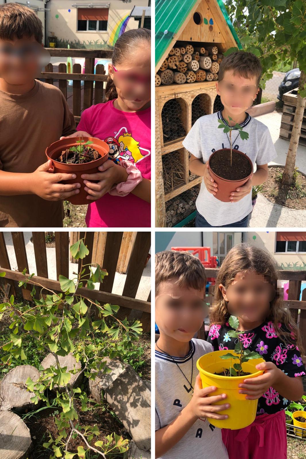 E a proposito di giardini, una bella sorpresa ha accolto i bambini al loro rientro: il nostro leccio, il ginkgo biloba, i mirti e la nandina erano lì, rigogliosi e in salute, dopo aver ricevuto le attenzioni necessarie anche durante l’estate. I bambini hanno riportato a scuola la piantina di salvia donata dalla commissione Green School il giorno della premiazione, insieme alle giovani piantine di leccio nate dalla nostra ghiandaia, che erano state affidate loro durante l’estate.