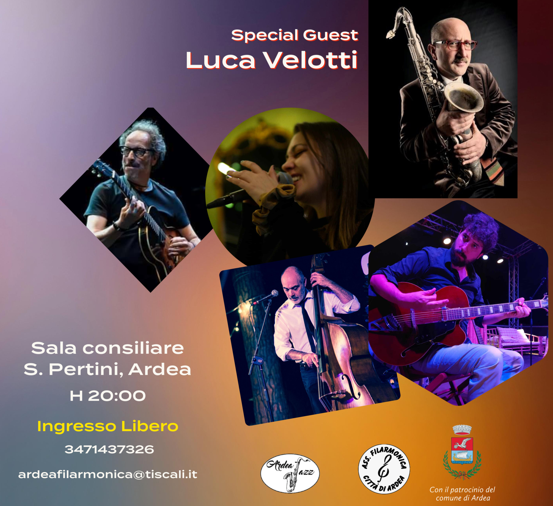 Evento organizzato dall’Associazione Filarmonica, Sabato 22 Febbraio Sala Consiliare “Sandro Pertini” Ardea. Mystery Pacific 5 tet: Valeria Piccolo, Francesco Pucci, Alessandro Russo, Fabrizio Montemarano; special guest Luca Velotti