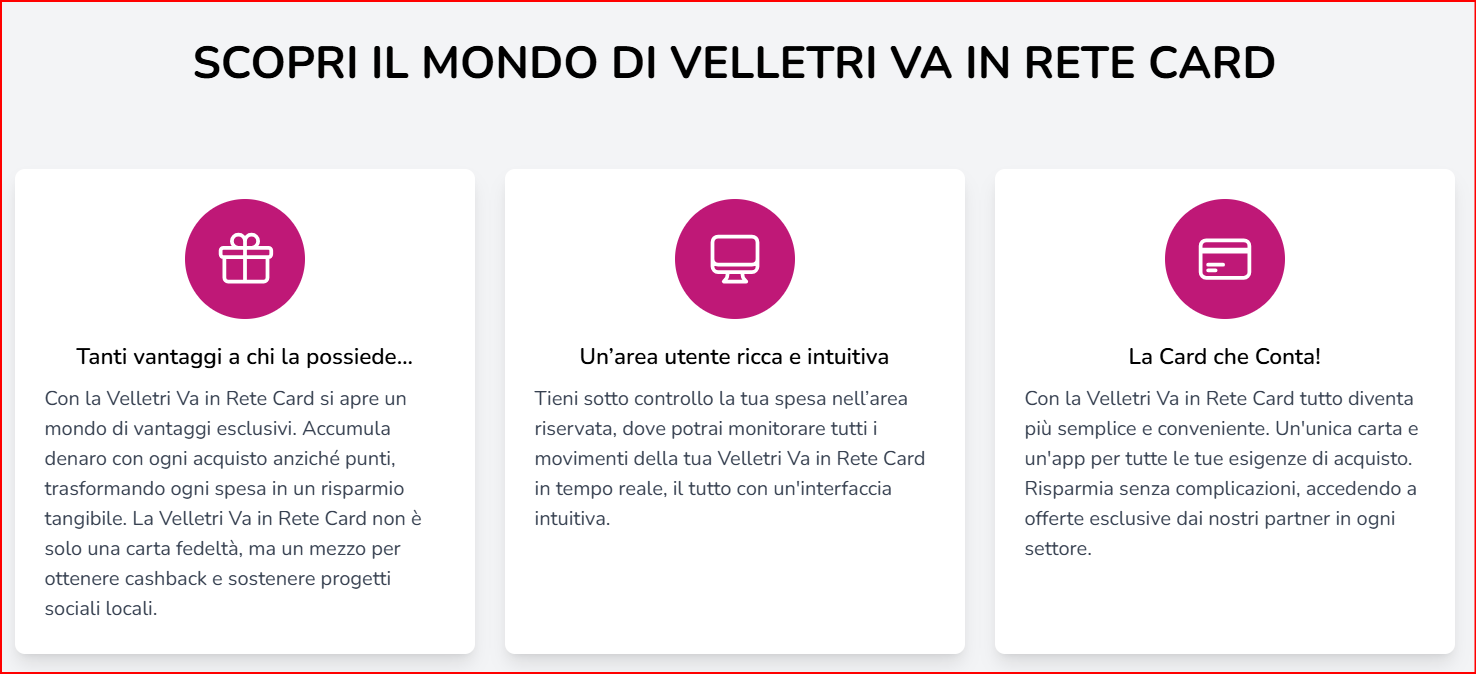 Con la Velletri Va in Rete Card, ogni acquisto non è soltanto un gesto quotidiano, ma un contributo concreto alla vita economica e sociale della città e dei comuni che stanno scegliendo di entrare in questa rete.