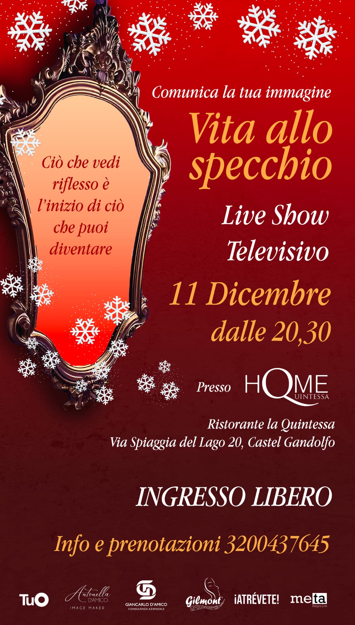 Castel Gandolfo 10 dicembre 2025 – Castel Gandolfo si prepara ad accogliere per domani giovedì 11 dicembre la puntata natalizia di “Vita allo Specchio Live“, lo Show Televisivo ideato e condotto da Antonella e Giancarlo D’Amico.