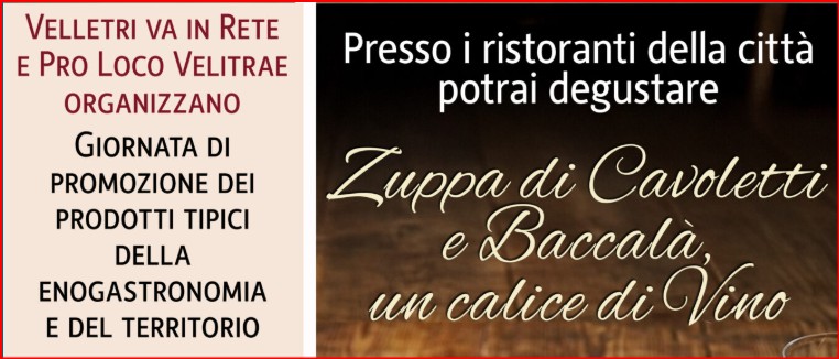 Velletri 25 gennaio 2926 – Giornata che ha visto un piatto tipico come la zuppa di cavoletti e baccalà, protagonista indiscusso, sui piatti di moltissimi turisti.